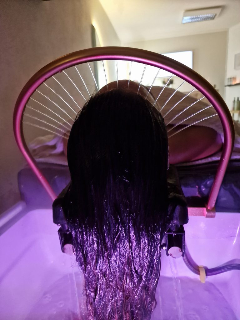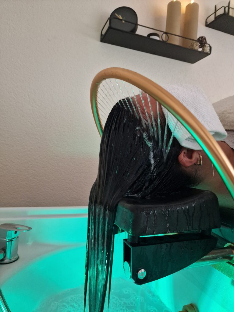 - Tiefenreinigung der Kopfhaut + Haarpflege