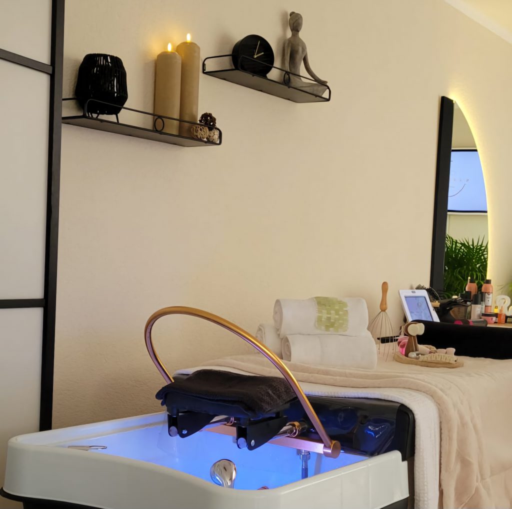 - Intensive Kopfhautmassage inklusive Nacken, Schulter und Dekoletté